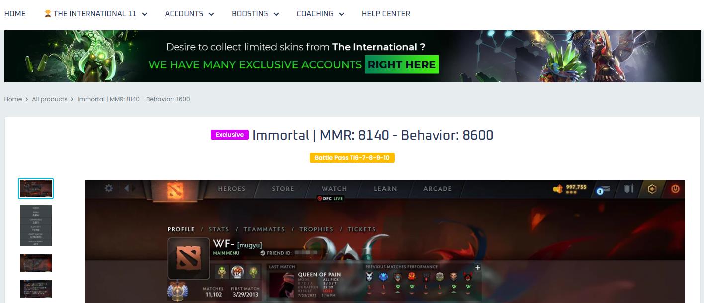 <figure><img src="https://4001285727-files.gitbook.io/~/files/v0/b/gitbook-x-prod.appspot.com/o/spaces%2FSHKauKo27VugKuWMdsdh%2Fuploads%2F9ZgWmOZx7Rm1mFpcQ4aw%2Fe6bc0f1cd8651f8aa91767eead3aa11.jpg?alt=media&#x26;token=c4994777-0a6f-4b53-a2ff-6b3d3a22b6e3" alt=""><figcaption><p>Dota 2 Exclusive Account</p></figcaption></figure>