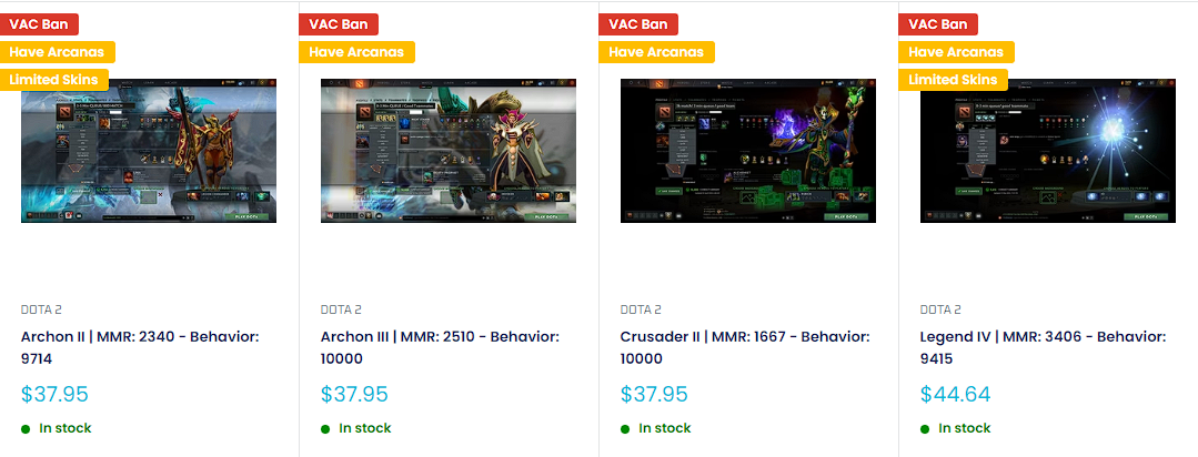 <figure><img src="https://4001285727-files.gitbook.io/~/files/v0/b/gitbook-x-prod.appspot.com/o/spaces%2FSHKauKo27VugKuWMdsdh%2Fuploads%2FRuoTTfmxtsvgWFutZhcN%2FScreenshot%202023-06-07%20131617.png?alt=media&#x26;token=a7d58e13-9765-4834-9512-c38c00aab5ce" alt=""><figcaption><p>Dota 2 VAC Ban Account</p></figcaption></figure>